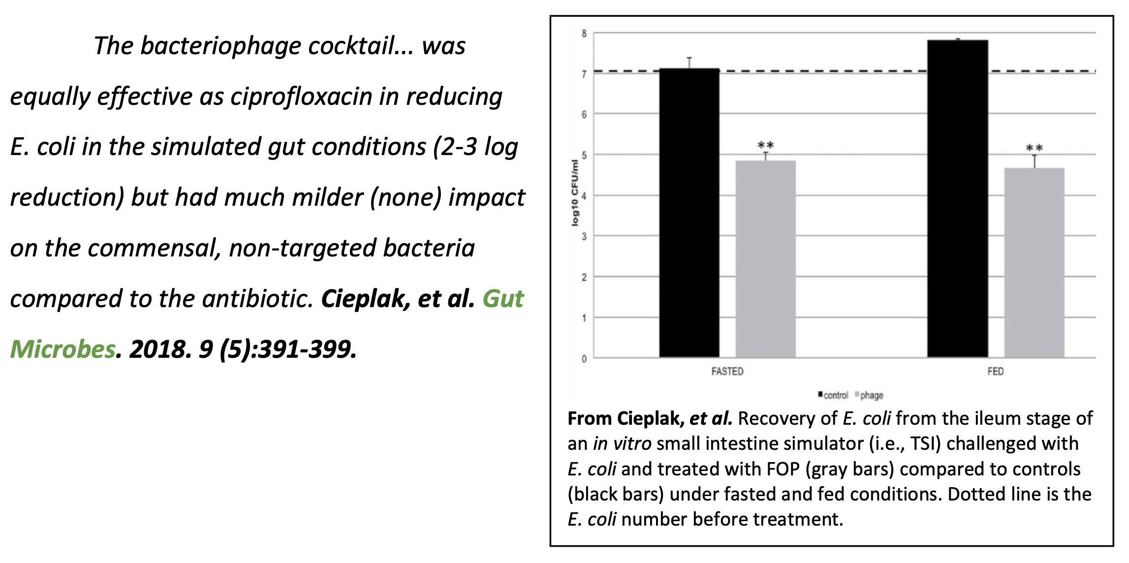 1. Cieplak, T., et al. (2018). "A bacteriophage cocktail targeting Escherichia coli reduces E. coli in simulated gut conditions, while preserving a non-targeted