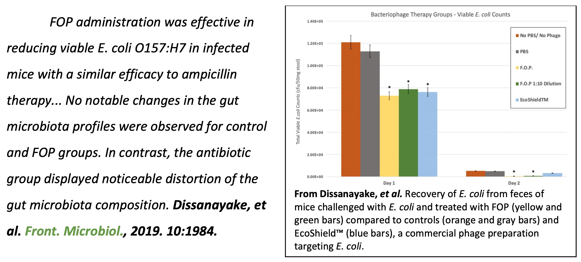 3. Dissanayake, U. et al. (2019). "Bacteriophages reduce pathogenic Escherichia coli counts in mice without distorting gut microbiota." Front Microbiol 10: 1984.
